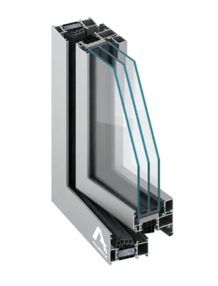 Wide glazing range with 2- or 3-pane glass packages, with thicknesses up to 63 mm for windows and up to 54 mm for doors, allowing the use of all types of glass, including acoustic or anti-burglary glass.