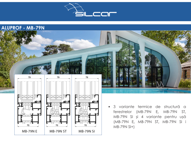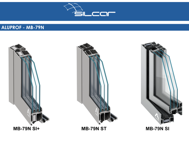 3 thermal structure variants for windows (MB-79N E, MB-79N ST, MB-79N SI) and 4 variants for doors (MB-79N E, MB-79N ST, MB-79N SI, and MB-79N SI+).