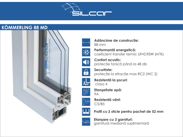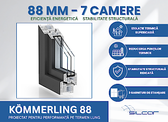 The KÖMMERLING 88 MD system sets new standards in the technical characteristics of a window. It is the latest system developed by PROFINE specialists. The system, featuring 7 insulating chambers with a depth of 88 mm, provides enhanced thermal and acoustic insulation through the third sealing gasket present. View details