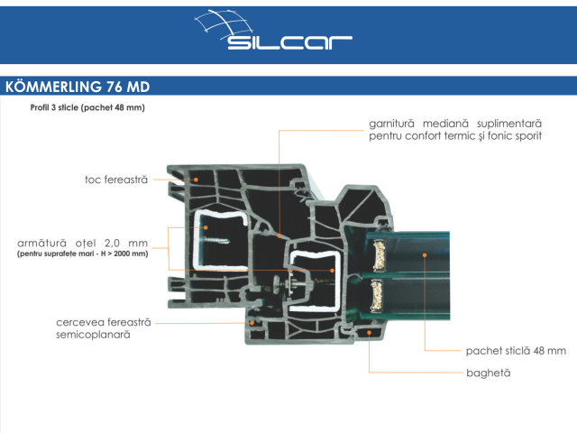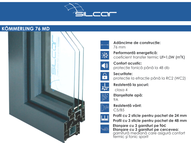 Energy Performance: The 76 mm installation depth allows energy efficiency similar to profiles with depths over 88 mm.