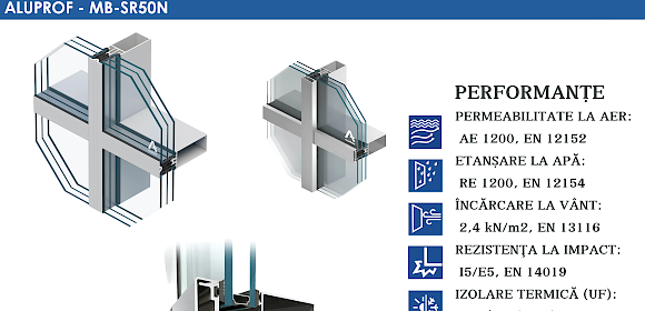 MB-SR50N System: A curtain wall system designed to create lightweight suspended or infill curtain walls, as well as roofs and other spatial structures.