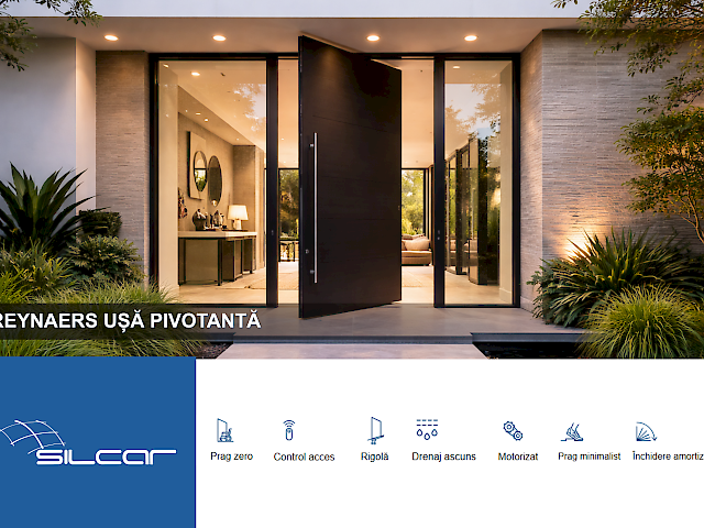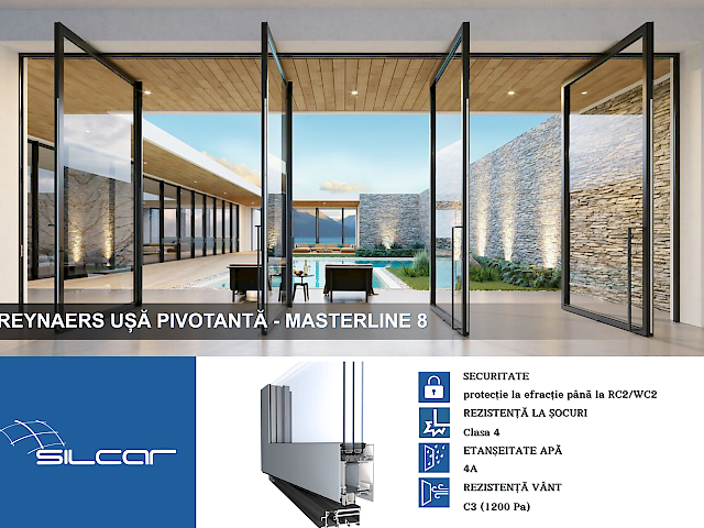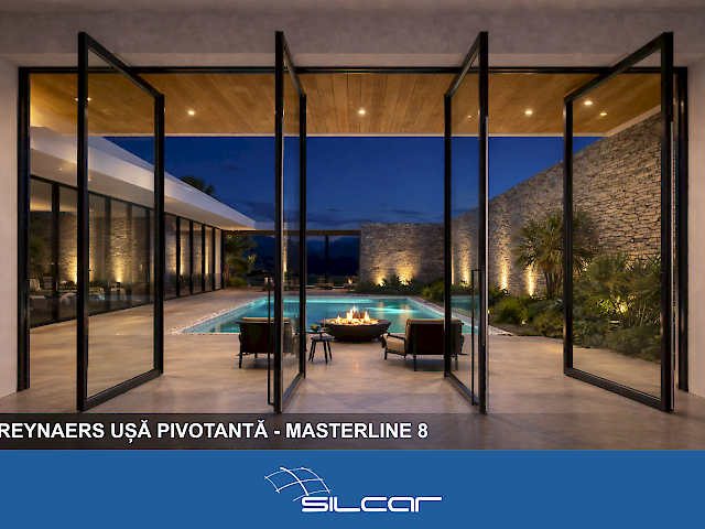 Usile pivotante MasterLine 8 din aluminiu combina un design modern cu performante remarcabile in materie de siguranta, izolare termica si robustete structurala. Acestea reprezinta o optiune ideala pentru intrarile principale, fiind disponibile in versiuni standard, intr-un format XL de mari dimensiuni, precum si intr-o varianta modulara, cu panouri multiple interconectate pentru un efect arhitectural spectaculos. Vezi detalii