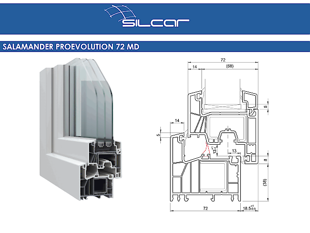 Sistemul Salamander proEvolution 72 MD este o solutie echilibrata, conceputa pentru proiecte care urmaresc performanta energetica ridicata, etanseitate superioara si stabilitate pe termen lung. Datorita sistemului de etansare mediana (MD), cu trei garnituri, ferestrele realizate cu acest profil ofera o protectie excelenta impotriva pierderilor de caldura, curentilor de aer si infiltratiilor de apa.